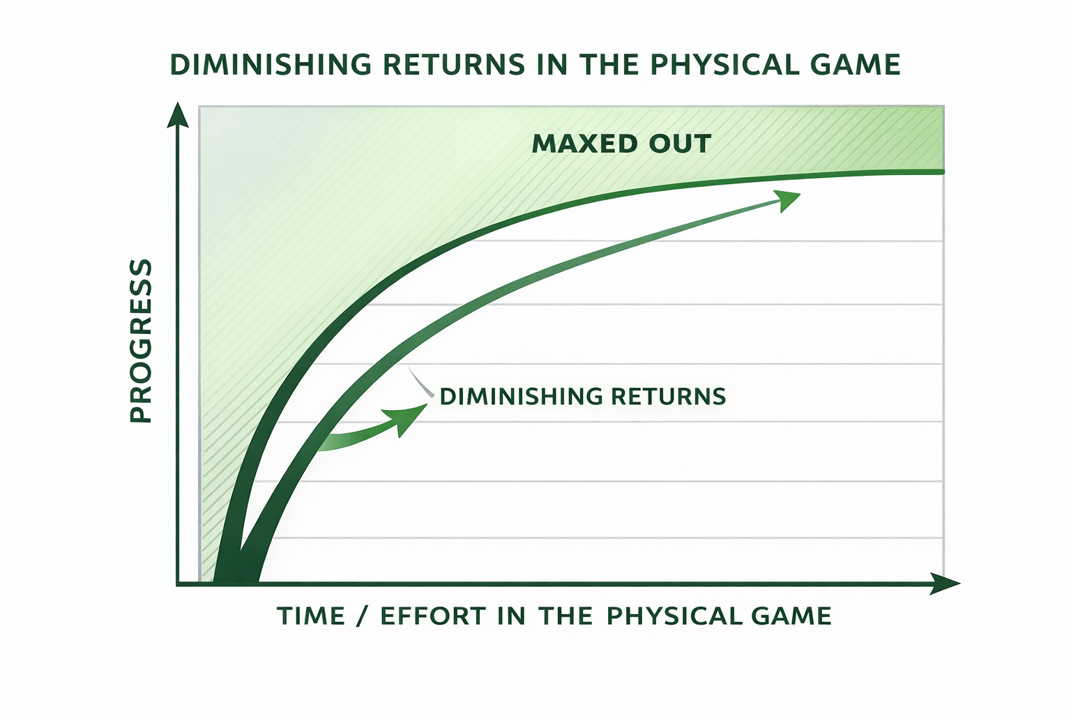 The first graph showed why so many serious golfers feel stuck: early technical work produces fast gains, but progress soon flattens. Effort increases, frustration rises, and improvement slows to a crawl.